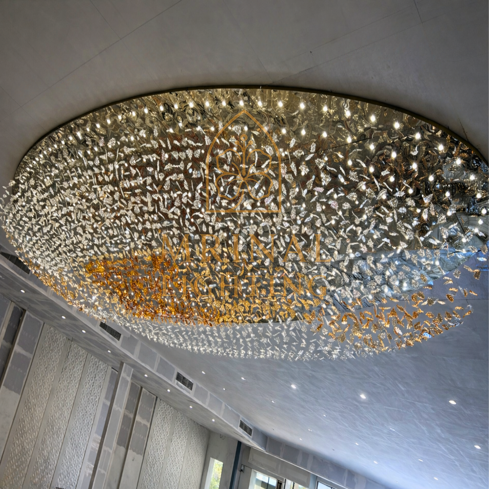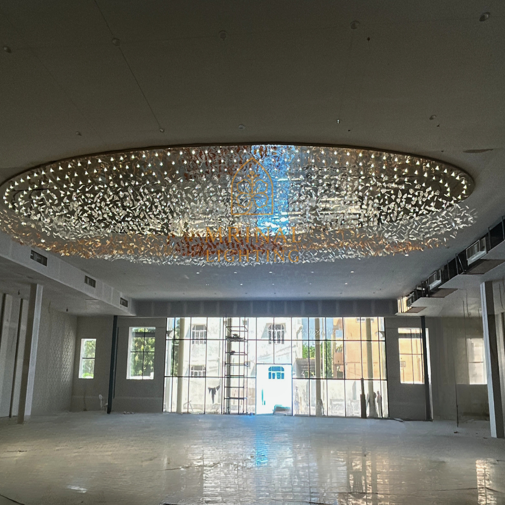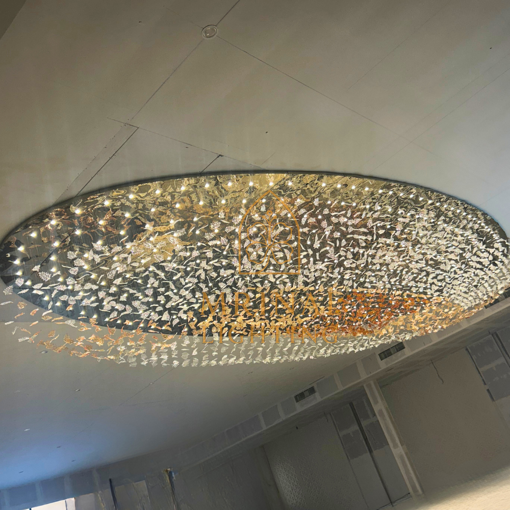 Oval Leaf Chandelier for Banquet and Convention Hall is not just a chandelier – it’s a piece of art made to impress everyone who walk under it. Designed and produced by Mrinal Lighting, this chandelier combine modern creativity with luxury craftsmanship.