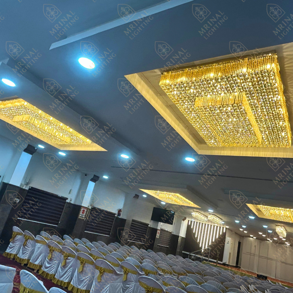 At Mrinal Lighting, we manufacture these chandeliers keeping Indian function halls in mind. Ceiling height, hall width, crowd capacity, and lighting temperature all matter. This is why every piece is made with proper weight balance, strong internal structure, and safe installation support. Beauty with safety. Always.